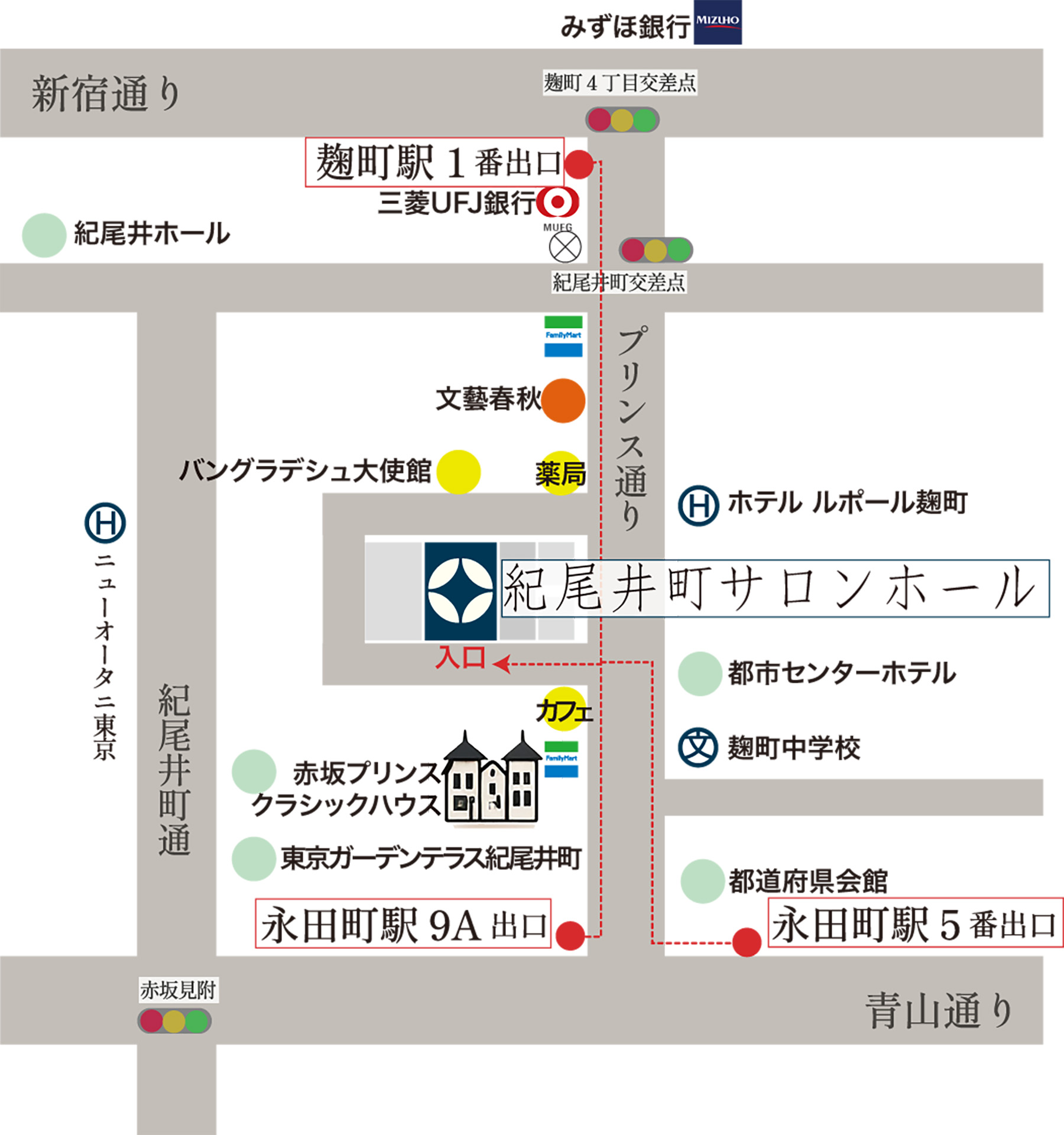 会場 紀尾井町サロンホール 麹町駅一番出口より6分くらい(”カンタービレ”と記載があります)